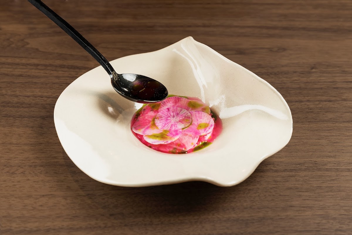 Echt een restaurant om aan te raden. We werden vriendelijk ontvangen door de gastheer. In de open keuken werd voor de gasten de drie gangen lunch gekookt. Mooie smaken, prachtige gerechten, geweldig aardewerk servies. Inrichting is pure eenvoudig, oogt Scandinavisch. Zeker om terug te komen!!